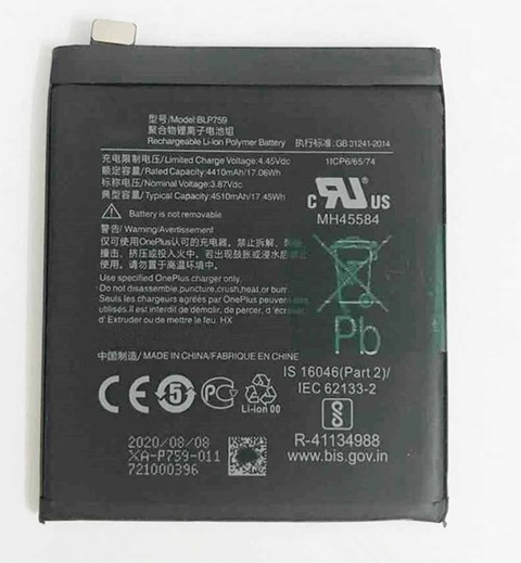Nos ONEPLUS BLP759 batteries en vente chez magasin-batterie.fr sont certifiéesneuves et de fabrication récente. Elles sont assemblées avec soin dans une usine respectant les meilleurs standards de fabrication ISO9000.